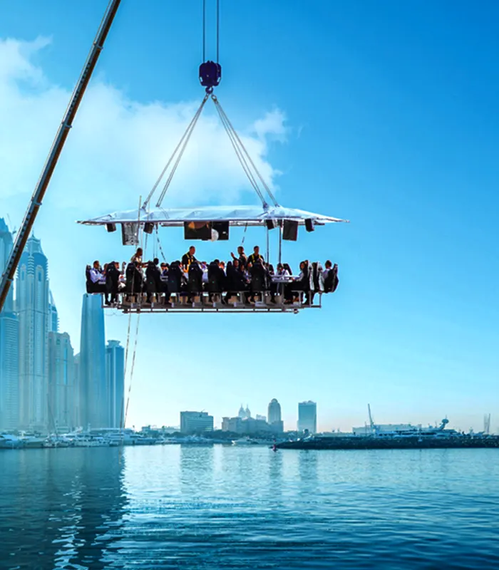 Elevate your dining experience—literally—with Dinner in the Sky. Suspended 50 meters above the city, you’ll enjoy gourmet cuisine while taking in panoramic views of Dubai Marina, the Palm, and beyond. It’s a once-in-a-lifetime dining experience that combines culinary excellence with awe-inspiring views