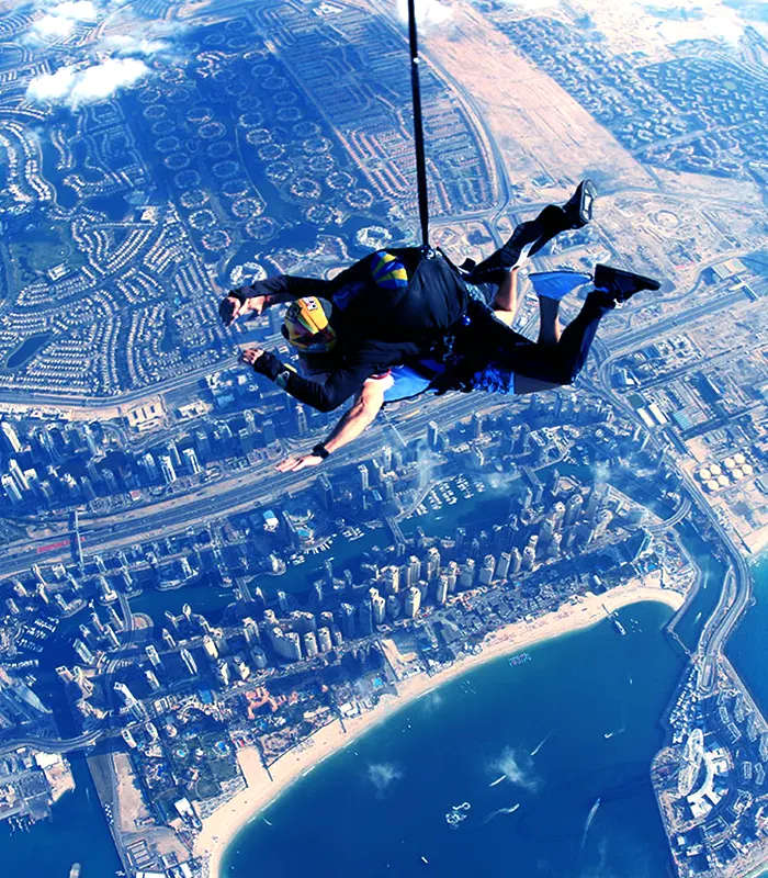 Take the plunge with a tandem skydive over Palm Jumeirah or the Arabian desert. This exhilarating experience lets you freefall from thousands of feet above, before gliding safely back to Earth while taking in the breathtaking views of Dubai’s skyline, beaches, and deserts.